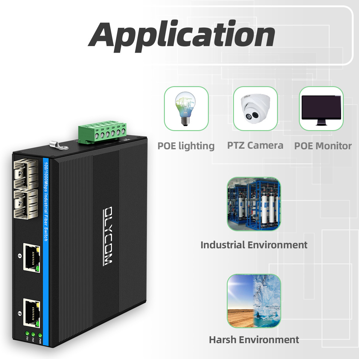 | Tên sản phẩm | Switch Fiber POE Công nghiệp 10/100/1000Mbps (2F+2TP) |